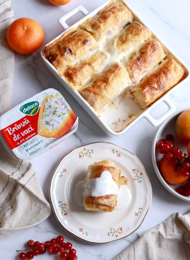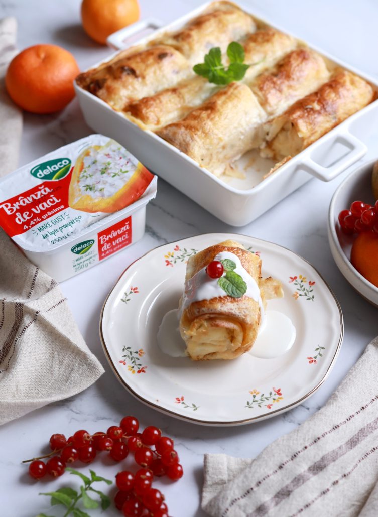 Umpluturile clasice, precum gemul, dulceața sau crema de ciocolată cu banane, sunt mereu populare. Însă combinația de brânză de vaci și stafide, completată de un sos de smântână dulce, duce acest desert iubit la un nivel superior – unul mai rafinat, dar la fel de familiar.