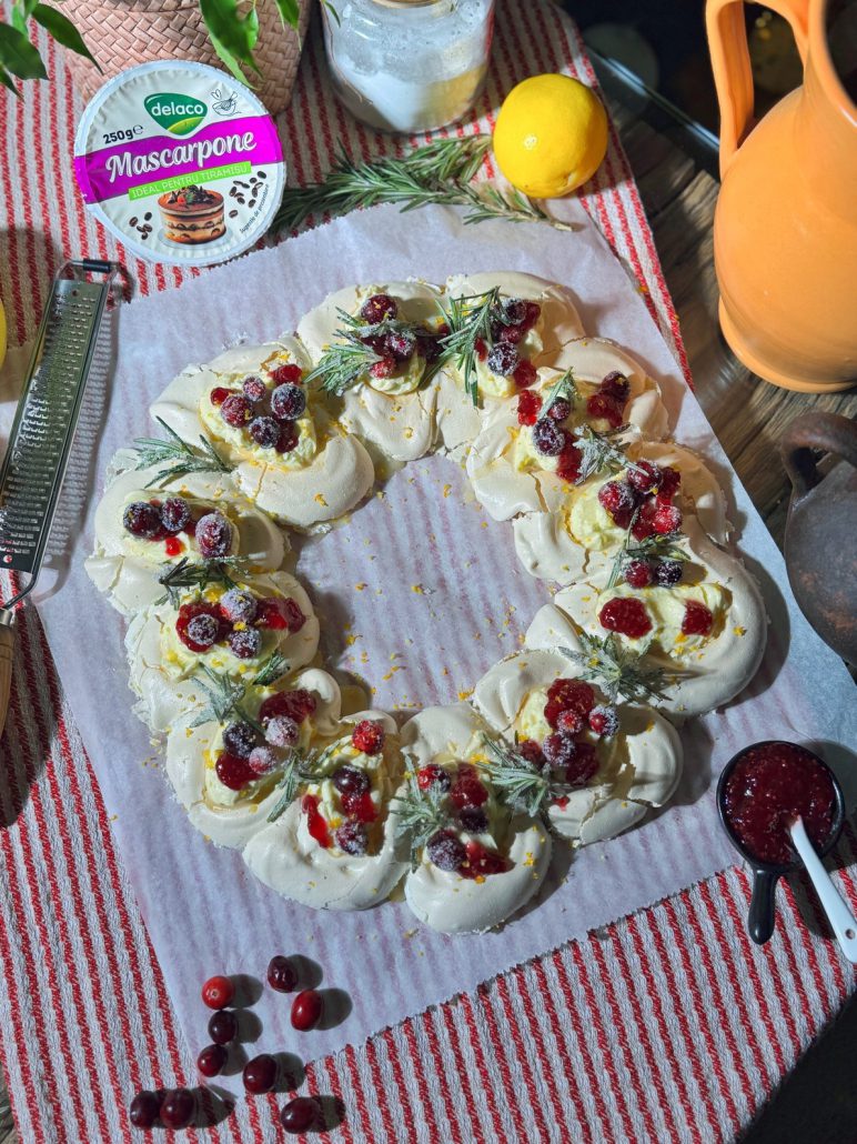 Coroniță Pavlova cu mascarpone Delaco – desert festiv ușor și spectaculos